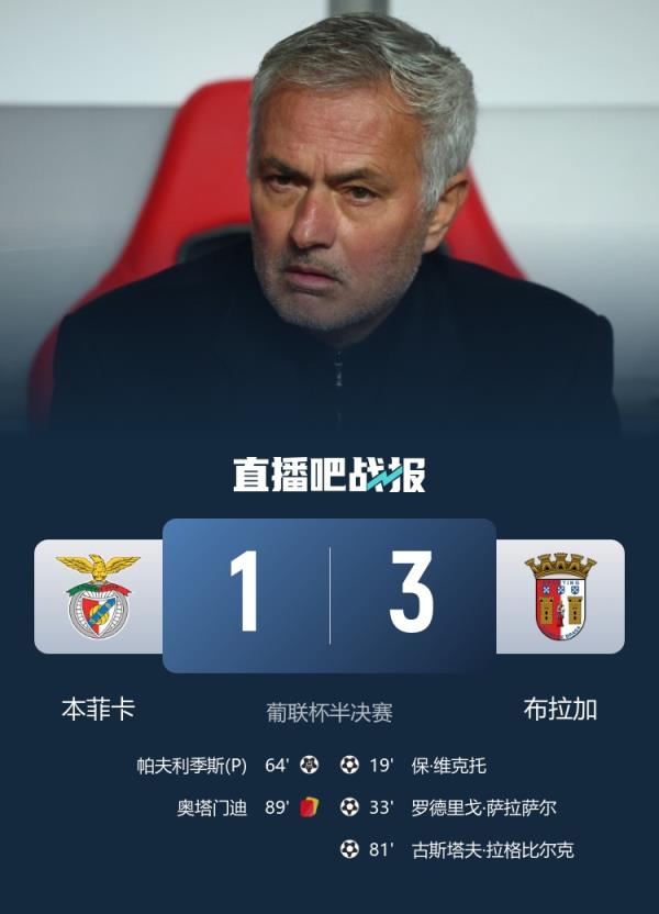 无缘葡联杯决赛!本菲卡1-3布拉加 萨拉萨尔一条龙奥塔门迪染红