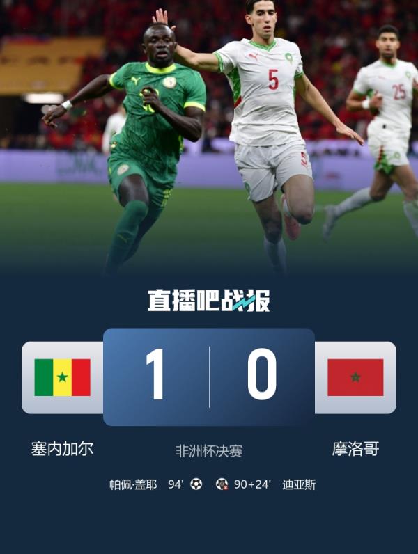 迪亚斯补时造点引争议,塞内加尔球员一度罢赛离场,随后迪亚斯勺子点球被扑。加时赛帕佩·盖耶世界波破门,塞内加尔加时1-0摩洛哥第二次夺得非洲杯冠军。